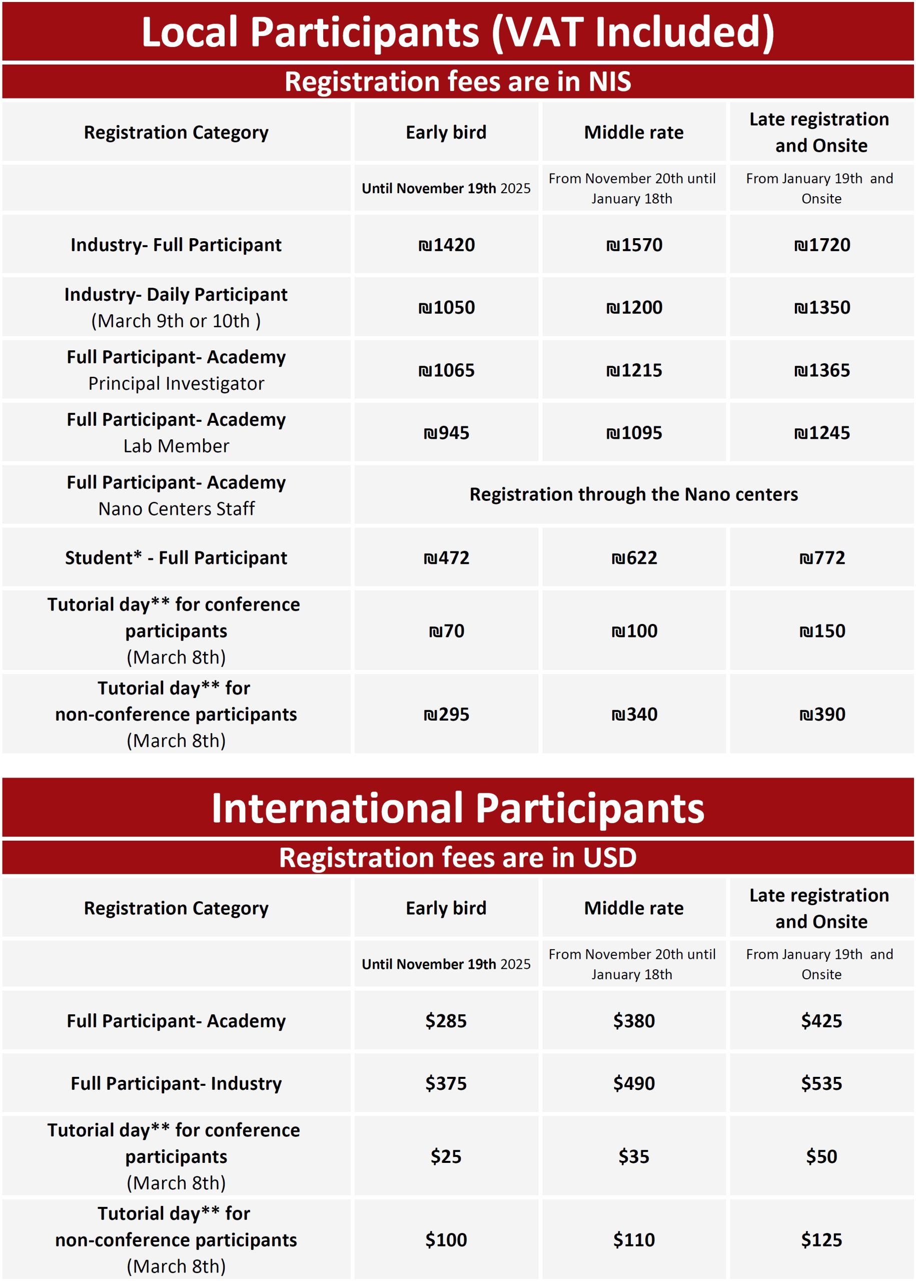 Payment of registration fees (in USD) can be made only via credit card: