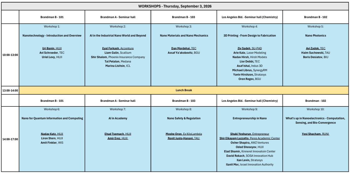 Join Our NANO.IL.2026 Tutorials Day which offers 8 Workshops in Various Fields of Nanotechnology.